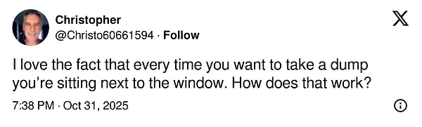 ‘Her tuvalete gittiğinde pencerenin yanına oturmak çok hoşuma gidiyor. Nasıl oluyor bu?’
